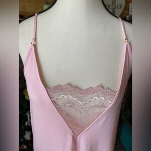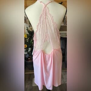 NWT Flora Nikrooz Pink 650 Lace Racer back Night Gown Sz XL. Beautiful V neck covered with lace racer back with lace adjustable straps pit to pit 19” Strap to bottom 34” MSRP 48