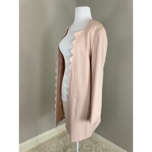 NWT Pink Linen Long Blazer Scallop Spring Summer Modest Sunday Church Office