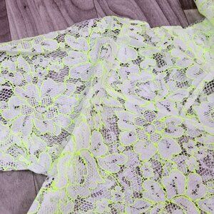 NWT Pink Lipstick Loungewear Mini Midriff Floral Lace Hoodie Glows in Blacklight