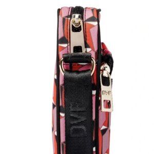 Carry your phone and more in style with this Modern Geo Cellphone Holder from Diane von Furstenberg for Target. Designed with pink modern geo pattern, this fabric cellphone holder features a zippered main compartment with convenient interior credit card pockets as well as a front zip pocket. The adjustable strap allows for comfortable carrying, and it also comes with a matching pouch that you can use to stash other small accessories.