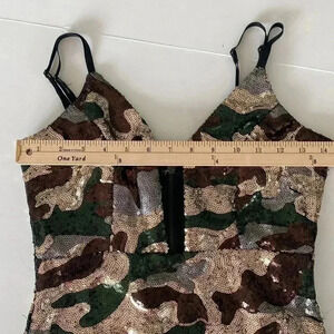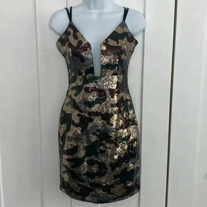 NWT Pink Owl Sequin Camo Plunge Neckline Stretchy Cocktail Dress Medium