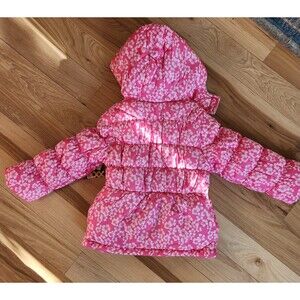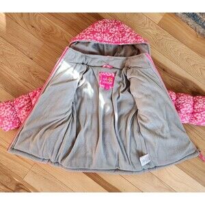 NWT Pink Platinum Girls Winter Puffer Hooded Lined Coat - Pink Floral - Size 4