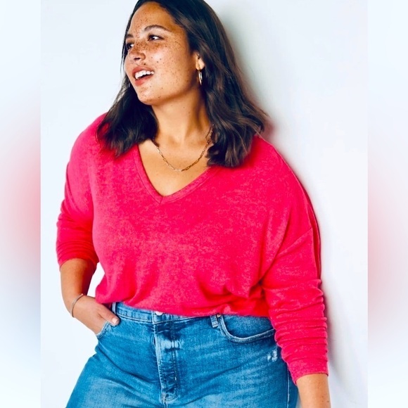NWT! Pink Quarter Sleeve V Neck Oversized Pullover Shirt - Size XS