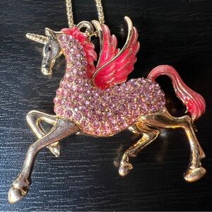 🪽 NWT! Pink Rhinestone Pegasus Necklace