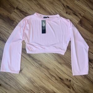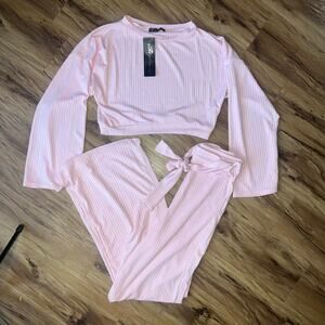 NWT Light Pink Ribbed Two Piece Set Size Small Cropped Top Flare Bottoms