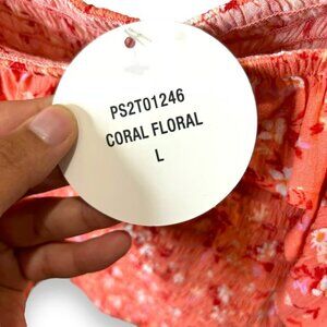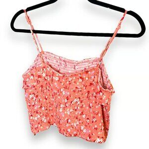 NWT Pink Rose Smocked Floral Peach coral Crop Top - Large