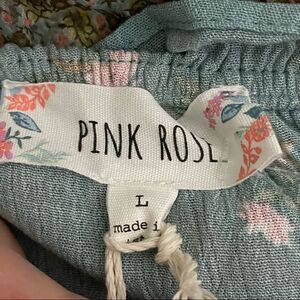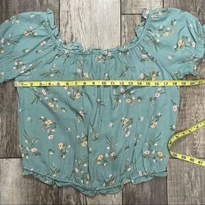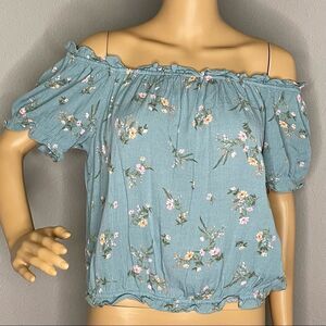 NWT Pink Rose Turquoise Floral On or Off Shoulder Croptop Size Large