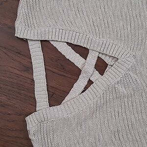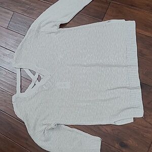 NWT Pink Rose Women's V-Neck Creamy Oatmeal Lightweight Sweater size 2X. Criss Cross pattern in the back.