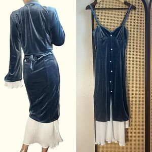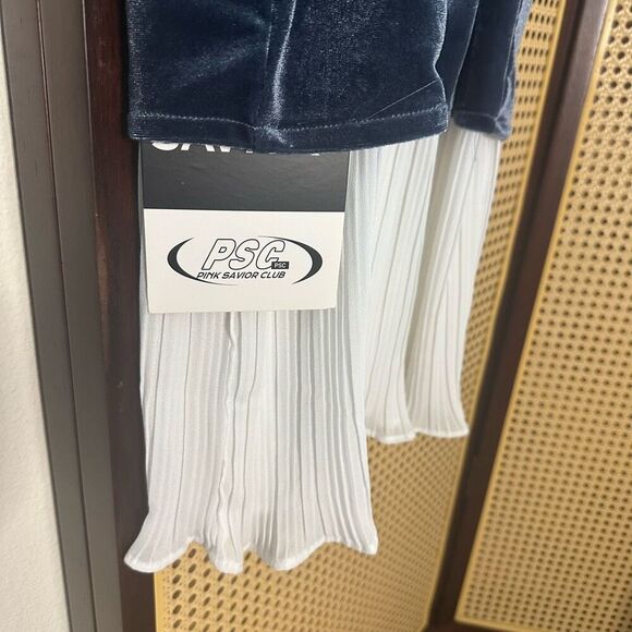 NWT Pink Savior Club Blue Velvet Mandarin Collar 2-Piece Dress Set Size M
