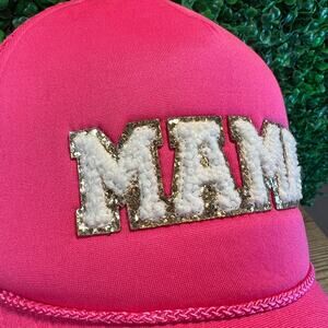 NWT Pink Sequin Chanille Patched Mama Pink Mesh Snapback Hat