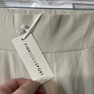 Brand new with tags Pink Soda Sport Women’s Ivory Ribbed High Waisted Flare Pants in size Medium.
