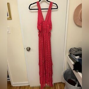 NWT Pink Tiered Shimmer Metallic Dress size Large