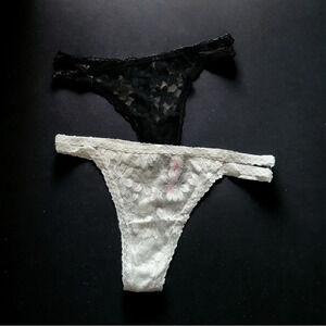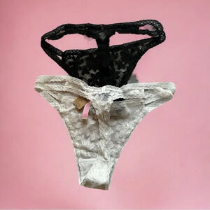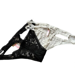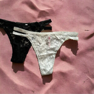 NWT Victoria Secrets Pink Lacy Thong G-String Panties (2) Pair bundle One black one white. Brand new with tags.