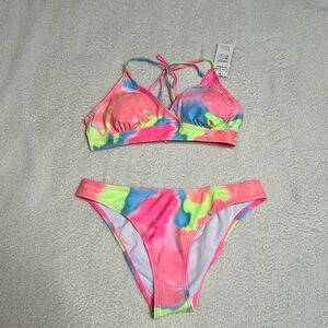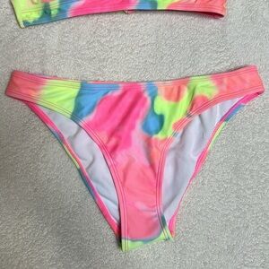 NWT! Pink yellow and blue Tie-Dye Triangle Top & Cheeky Hipster Bikini Set