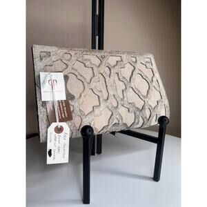 NEW WITH TAGS Check out this Laser cut cowhide clutch in "emma grey" from Piper Collection. Handmade by leather artisans--interior zipper pocket, and absolutely incredible brocade cowhide design.