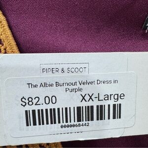 NWT Piper & Scoot The Albie Burnout Velvet Dress in Purple Women's XXL Purple