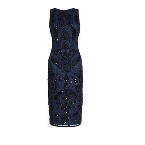 NWT Pisarro Nights Beaded Pencil Dress Navy [ SZ 2 ]