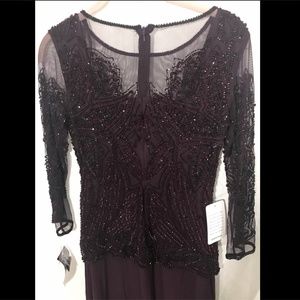 NWT! Pisarro Nights Embellished Mesh Gown New Wine [ SZ 2 ]