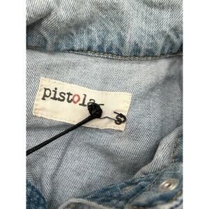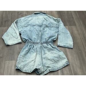 NWT Pistola Denim Luca Romper Ruched Waist 3/4 Sleeve Collared Light Wash Size S