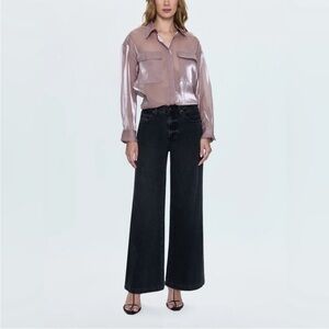 NWT Pistola Shimmering Organza Pink/Plum Button Front Blouse Semi-Sheer