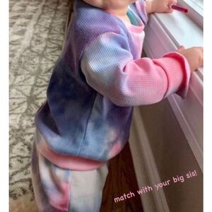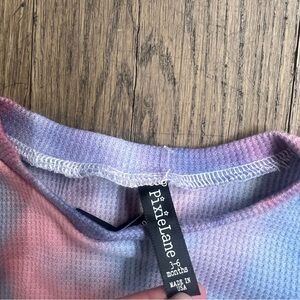 New with tags, never worn. Pixie Lane Tie Dye Waffle Set. Size 3/6 months. 95% polyester 5% spandex