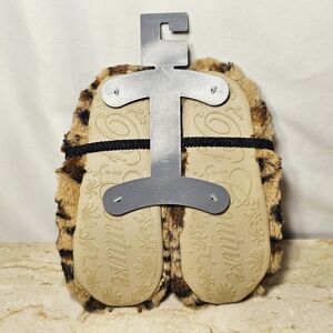 1) M/7-8 plush leopard print Slippers with pom-poms; and