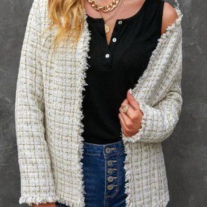 NWT Plaid Raw Edge Frayed Tweed Jacket