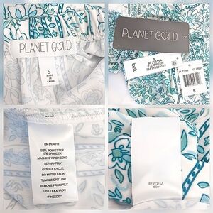 NWT Planet Gold Green Striped Boho Blouse Floral Off Shoulder Tie Sleeve Top S