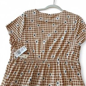 NWT- Planet Gold Plus Size 2X Babydoll Dress with Daisy Plaid