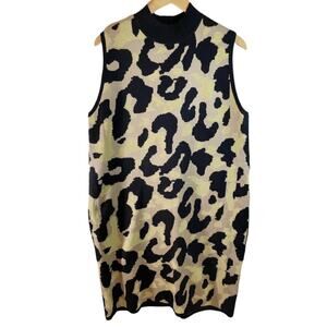 NWT Planet Gold Women's Plus Size Sleeveless Leopard Mini Sweater Dress Size 1X
