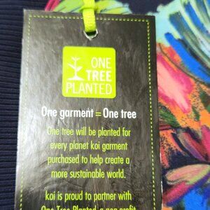 NWT Planet Koi Bright Tropical Print Scrub Top with Stretch Knit Sides Size S