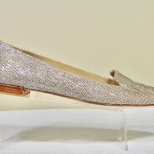 🏷️ NWT Stuart Weitzman Platinum Gold Sparkly Pointed Toe Flats – Size 6