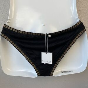 NWT Platinum Swimwear Gold Crochet Trim Bikini Bottoms Size S