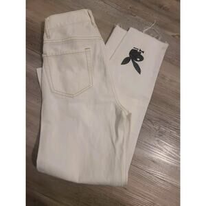 NWT Playboy High Waisted Cutout Pocket Jeans White Size 23 Logo Denim Pants
