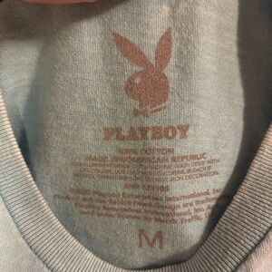 NWT Playboy x Missguided Retro Cherry Logo tee. Size medium. Light blue in color. 100% cotton short sleeve with a retro vibe.