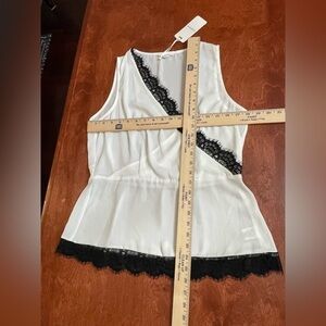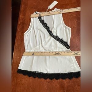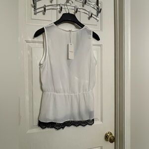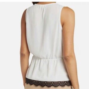 NWT Pleione Lace-trimmed Peplum Blouse Women’s Size M Surplice Neck White