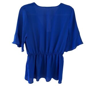 NWT Pleione Royal Blue Flutter Sleeve Peplum Blouse Size Small