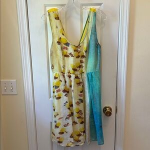 Size 10 new with tags. Print is super cute of beach and swimmers. Lined w a slip and exposed back zipper.