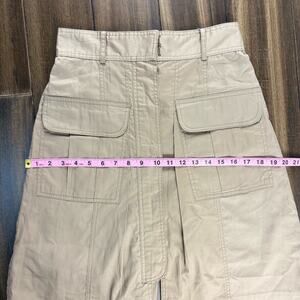 NWT flawed - has some pulls around the garment (pictured), and has a puncture/scrap marks on the inside of the skirt (can’t see from the outside). Has belt loops, lots of cargo style pockets, buttons all the way down the skirt, slide closure at the top, color is called Camel.