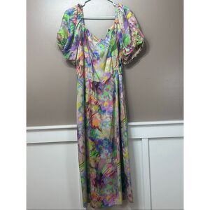 NWT Plenty by Tracy Reese Puff-Sleeve Floral Anthropologie Midi Dress Women's L