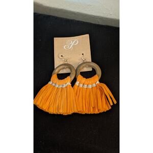 NWT Plunder Design "Everette" Orange Raffia Wood Earrings