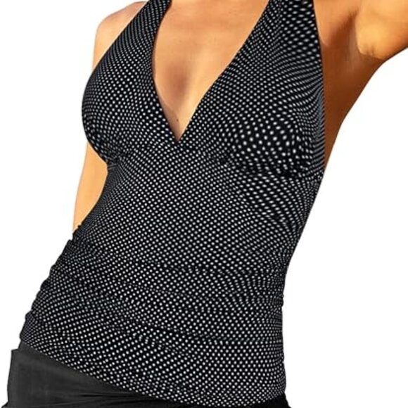 NWT Plunging V Neck Halter Shirred Tankini Swim Top Polka Dot 18