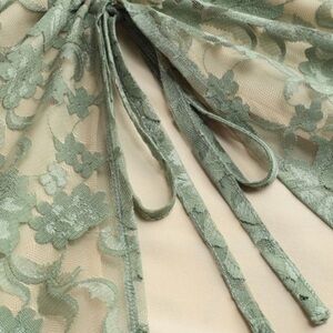 This is a beautiful dress, perfect for a special occasion. This dress is brand new, still in bag. The size is 2xl, 16/18. The dress is a soft green lace over a beige. It has a beautiful slit that can be adjusted. Any questions; please ask. I ship within 24hrs unless on weekends and holidays.