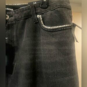 NWT Plus Size Fashion Nova Drippin' Embellished Straight Leg Jeans Black Wash 16