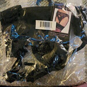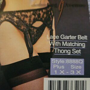Brand new in the package. Adjustable Black Lace Garter Belt and G-String Set from Leg Avenue. It's a one size item.