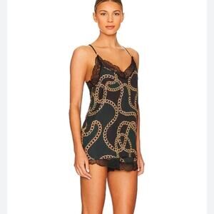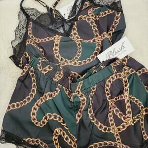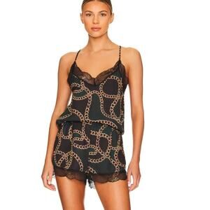 NWT Plush Revolve Green Black Satin Chain Print Camisole Shorts Set Medium