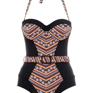 Brand New With Tags. Urania Cleopatra One Piece has underwire molded cups, removable straps for tanning, medium coverage on the bottom and contrast fabric panel inserts to contour the body. You can tie the suit around your neck or loop the straps on the metal rings on the back to shift the support to your shoulders.