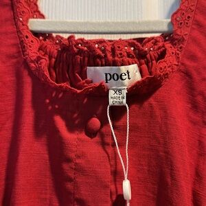 NWT! Poet Dresses Hymn Red Wine Merlot Linen Milkmaid Dres x-small. 100% linen, red wine color, hidden side zipper, square neckline, buttons up front, short puff sleeves, full skirt- hits at ankles, fitted thru bodice, smocked rear panel with adjustable lacing up back, fully lined. Sold out!! Offers accepted!