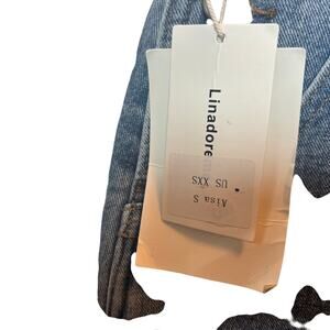 NWT Point zero Women distressed Denim Carpenter midi skirt overall XXS cottage
