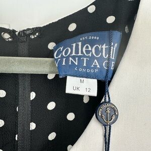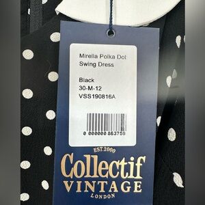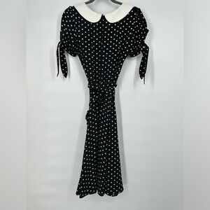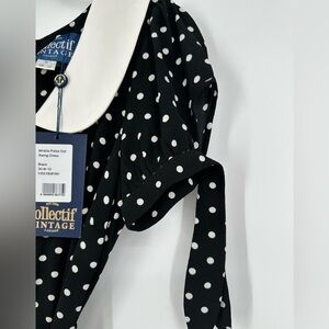 NWT Polka Dot Collectif Vintage Mirella Swing Dress. Peter Pan collar. Blackk and white tie with tie at waist and ties at sleeves. Such a fun retro look! Size medium